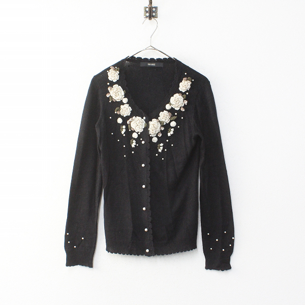 :PINK HOUSE ピンクハウス フラワーモチーフ パール装飾 ウールアンゴラ カーディガン