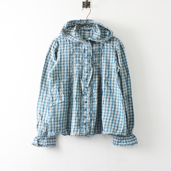 :PINK HOUSE ピンクハウス ピコフリル ギンガムチェック フードブラウス