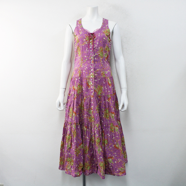 :PINK HOUSE ピンクハウス レース使い 前ボタン ストロベリー柄 プリントティアードワンピース