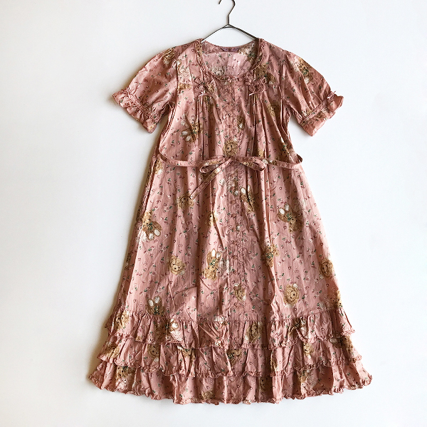 :PINK HOUSE ピンクハウス ピコフリル テディベアローズプリント ロングワンピース