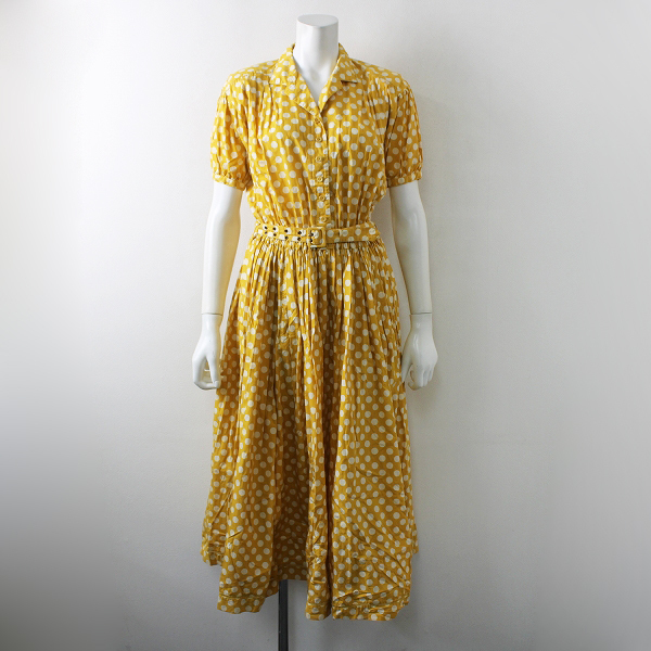 :PINK HOUSE ピンクハウス ドットプリント フレア オープンカラー シャツワンピース