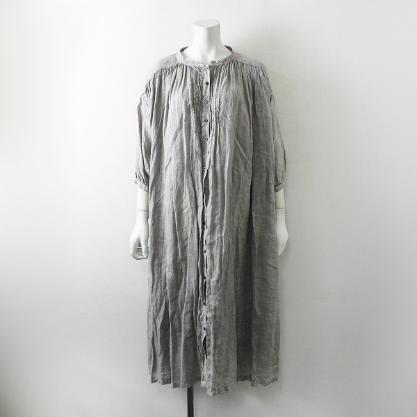 :ナチュラン TUTIE ツチエ リネン ムラ染め バンドカラー シャツワンピース