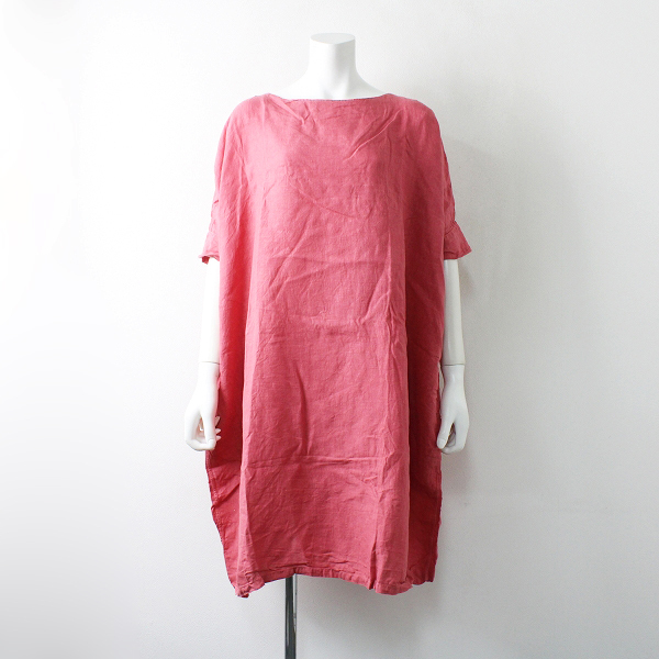 :うさと 手織り 天然草木染め Vネック フレア チュニック