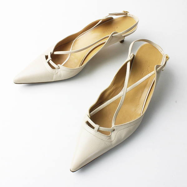 :HERMES エルメス レザー バックストラップ ポインテッドトゥ サンダル