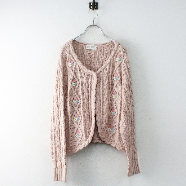 :2021年 PINK HOUSE ピンクハウス フラワー刺繍入り ケーブル編み 1ボタン ニットカーディガン