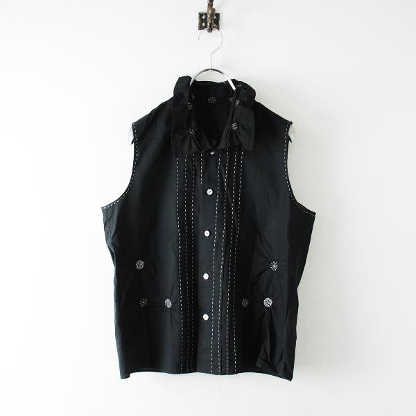:HaaT ISSEY MIYAKE ハート イッセイミヤケ ドット刺繍入り 前ボタン ノースリーブシャツベスト