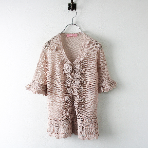 :2019AW PINK HOUSE ピンクハウス フラワーモチーフ 透かし編みボレロニットカーディガン