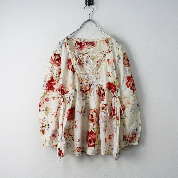 :PINK HOUSE ピンクハウス ローズプリント ピコフリル 綿ローン フレアブラウス