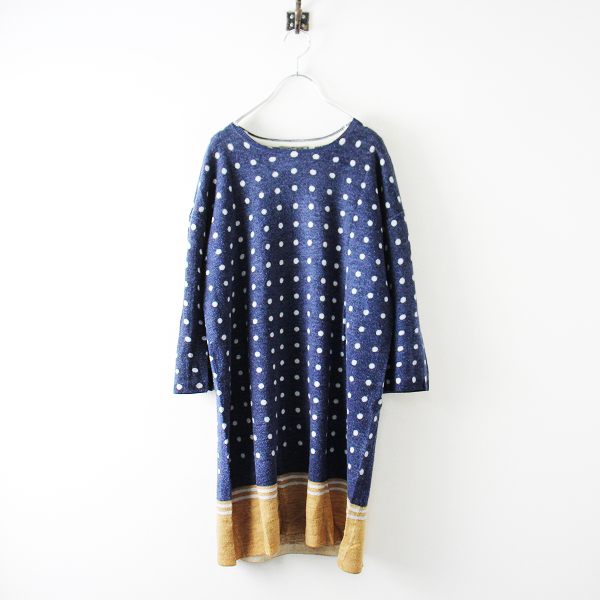 :45R Umii908 フォーティファイブアール 縮絨ウール インディゴ ドットワンピース