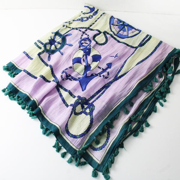 :manipuri マニプリ アンカープリント コットンシルクストール ポンポン付