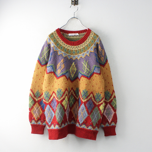 :KANEKO ISAO WONDERFUL WORLD カネコイサオ ワンダフルワールド 求心柄 ウールクルーネックニット レッド