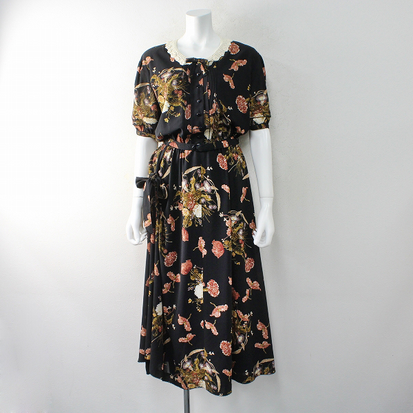 :KANEKO ISAO カネコイサオ 花柄 レース襟 ウエスト絞りフレアワンピース