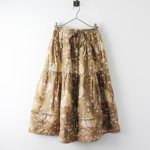 :2019AW PINK HOUSE ピンクハウス ティータイムプリント ピコフリル装飾 前ボタンフレアスカート