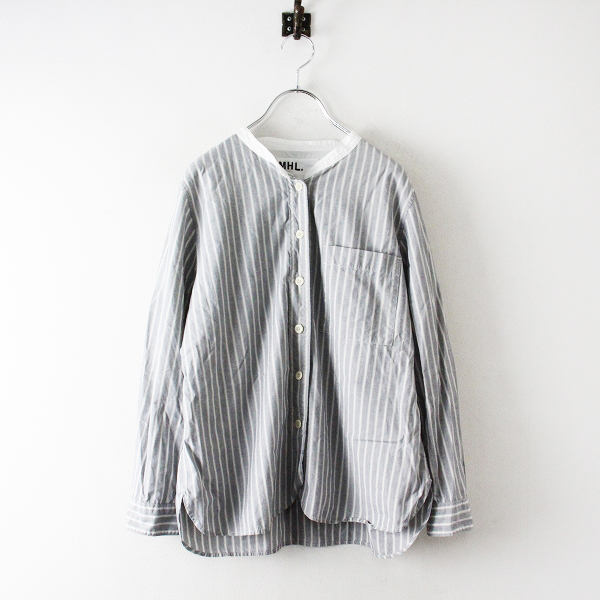 :MHL. エムエイチエル マーガレットハウエル コットン ストライプ カラーレスシャツ