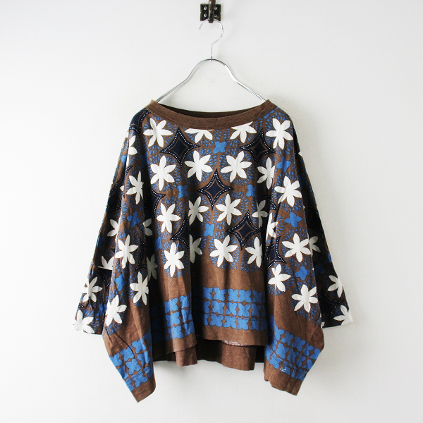 :2019FW marble SUD マーブルシュッド EMB bouquet 肩ボタン プルオーバーブラウス