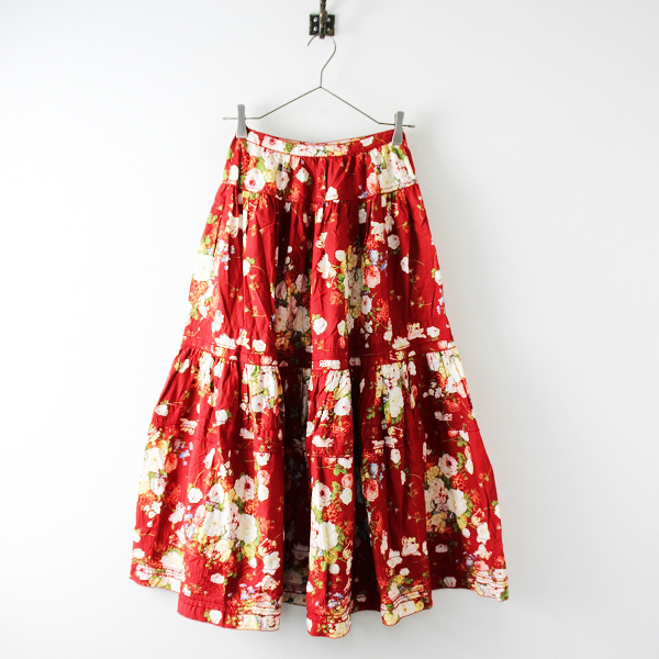 :PINK HOUSE ピンクハウス ローズブーケプリント 前ボタン フレアスカート