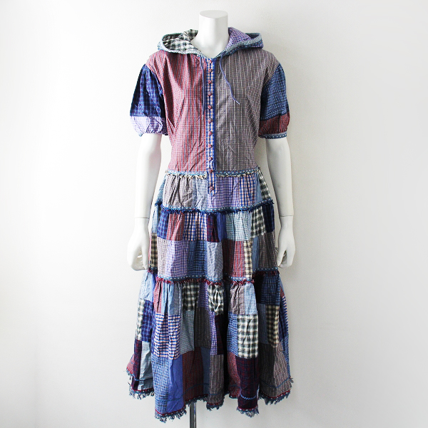 :PINK HOUSE ピンクハウス チェックパッチワーク 前開き 半袖フードワンピース