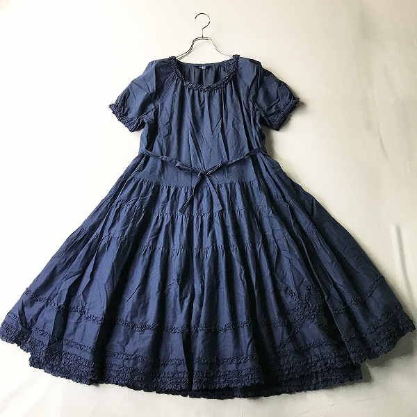 :PINK HOUSE ピンクハウス ピコフリル パフスリーブ 綿ローン ティアードフレアワンピース