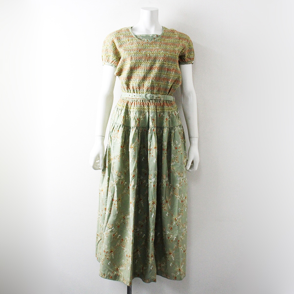:KANEKO ISAO カネコイサオ 花柄 シャーリング ウエスト絞り フレアワンピース