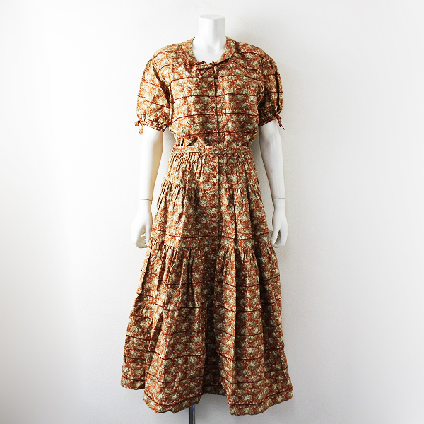 :KANEKO ISAO カネコイサオ 花柄 ウエスト絞り ティアードフレアワンピース