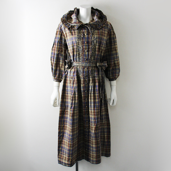 :KANEKO ISAO カネコイサオ ピコフリルフード チェック柄 ギャザーワンピース