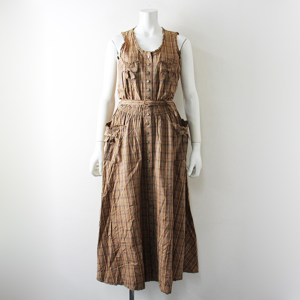:KANEKO ISAO カネコイサオ ピコフリル チェック ウエスト絞り フレアノースリーブワンピース