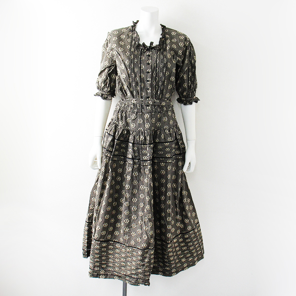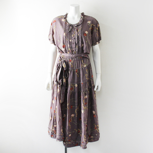 :KANEKO ISAO カネコイサオ 花柄ドットプリント ピコフリル ウエスト絞り フレアワンピース