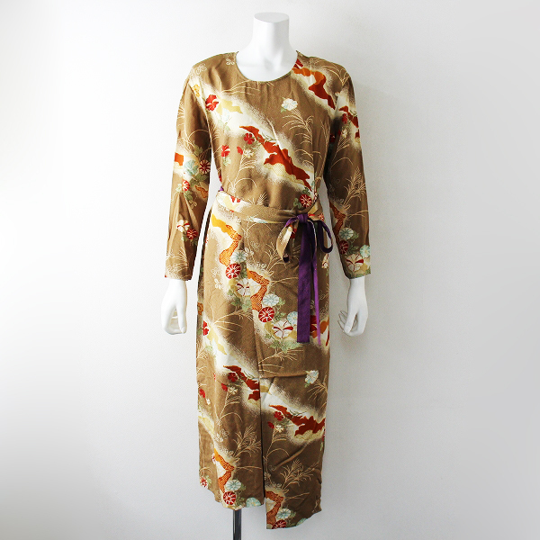:KANEKO ISAO カネコイサオ 縮緬素材 和柄 朝顔プリント ロングワンピース