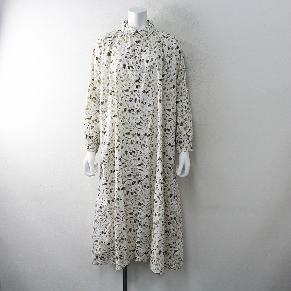 :ichi イチ セピアカラー フラワープリント コットン ロングシャツワンピース