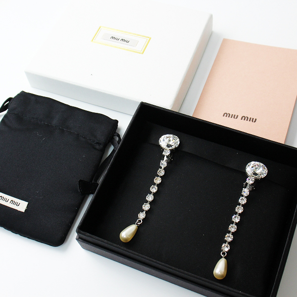 :MIUMIU ミュウミュウ JEWELS CLASSIC ジュエルズクラシック クリスタル&パール クリップイヤリング