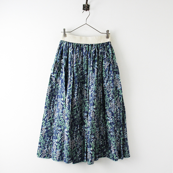 :2022SS ina イナ リネンコットンシーチング フラワープリントギャザースカート