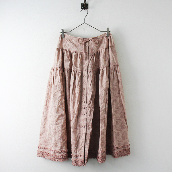 :KANEKO ISAO カネコイサオ 総 フラワー刺繍 綿ローン 前ボタン フレアスカート