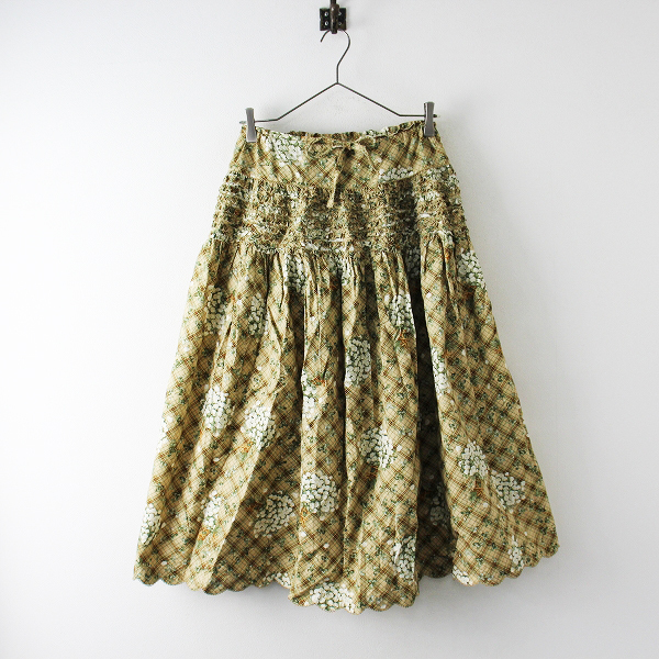 :KANEKO ISAO カネコイサオ チェック シロツメクサプリント ピコフリル フレアスカート