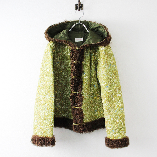 :KANEKO ISAO カネコイサオ ラムファートリム チャイナボタン フラワープリントキルティングフードジャケット