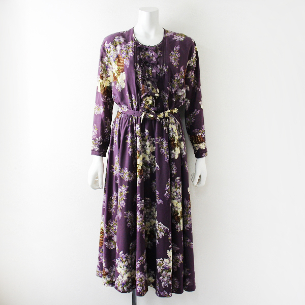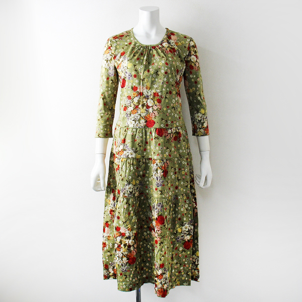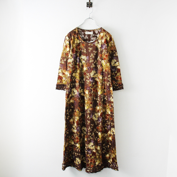 :KANEKO ISAO カネコイサオ ヴィンテージフラワープリント カットソー素材 長袖マキシワンピース