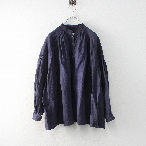 :atelier Rough atour アトリエ ラファトゥール スタンドカラー リネンプリーツワイドブラウス