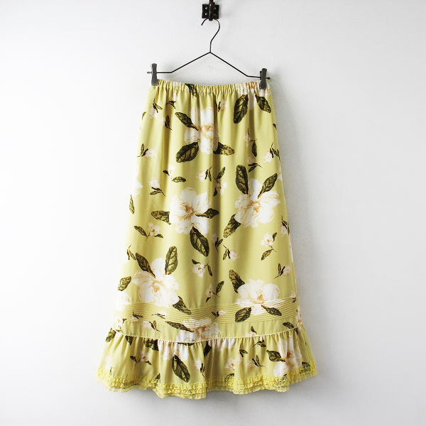 :KANEKO ISAO カネコイサオ フラワープリント シフォン 裾レース ロングスカート