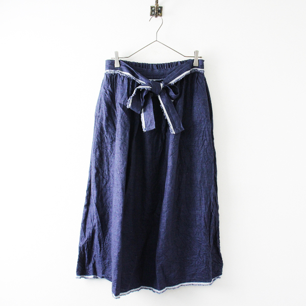 :ICHI Antiquites イチアンティークス インディゴ染め リネンフレアスカート