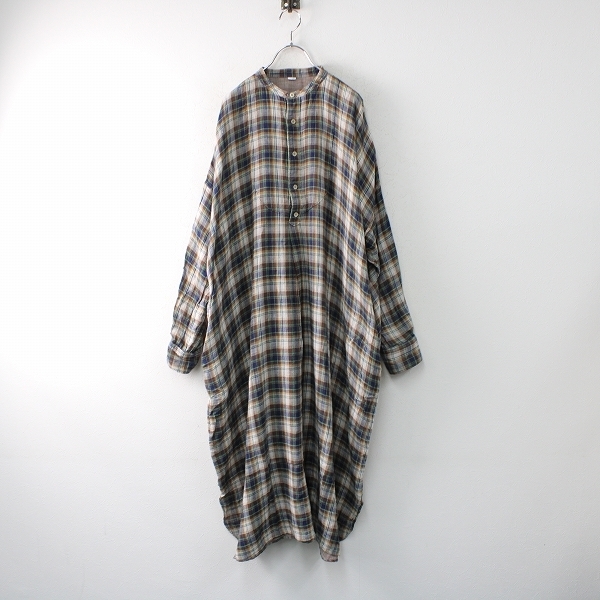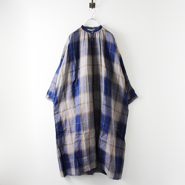 :2022SS Ichi antiquites イチ アンティークス 700617 リネンタータンチェックシャツワンピース