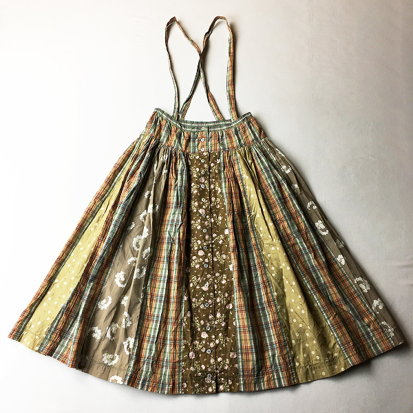 :PINK HOUSE ピンクハウス 花柄 X チェック パッチワーク フレア 吊りスカート