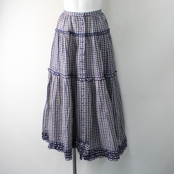 :PINK HOUSE ピンクハウス ピコフリル チェック柄 ティアードフレアスカート