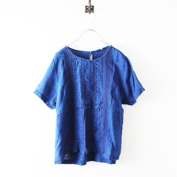 :45R フォーティーファイブアール リネン インディゴ レースブラウス
