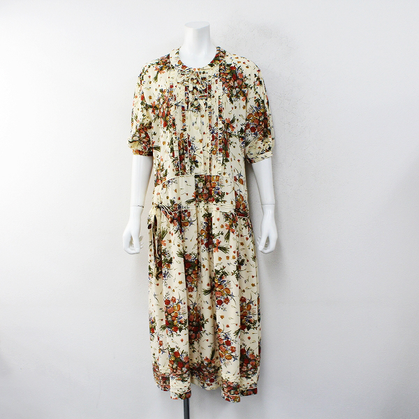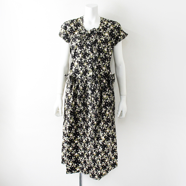 :PINK HOUSE ピンクハウス ローズプリント コットン 前開き リボン装飾 ロングワンピース