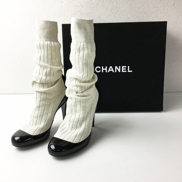 :CHANEL シャネル ソックスドッキング エナメルパンプス