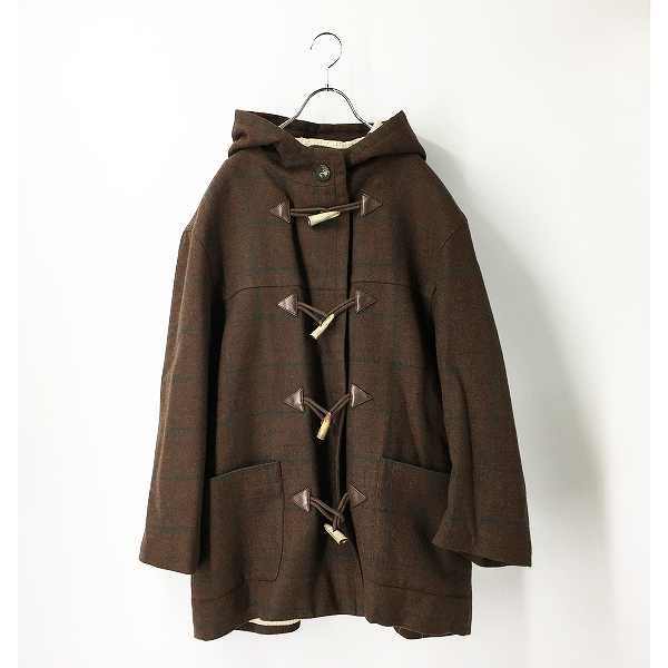 :HERMES エルメス 格子チェック柄 ウール フード付き トグルボタン ダッフルコート