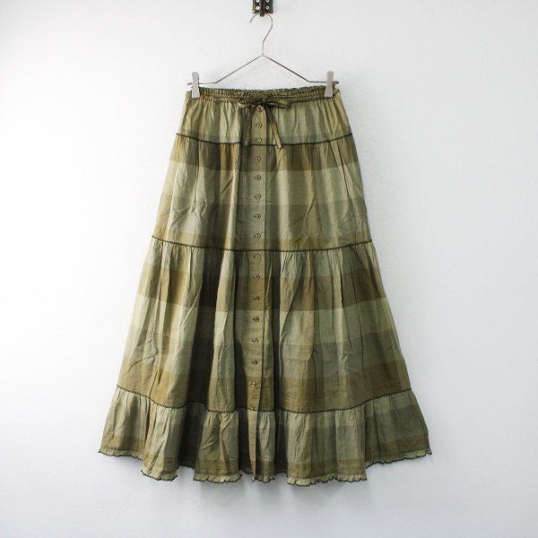 :2018SS PINK HOUSE ピンクハウス 綿麻 ピコフリル チェックティアードスカー