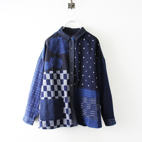 :儀右衛門 ギエモン インディゴ パッチワークワイドシルエット長袖シャツ