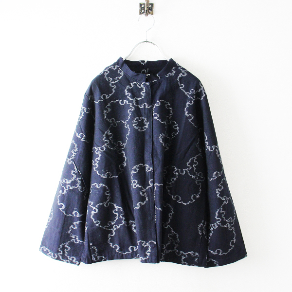 :儀右衛門 ギエモン インディゴ 柄ジャガード織り スタンドカラー スナップボタンジャケット