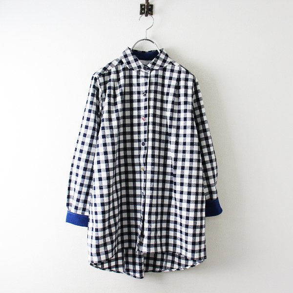 :儀右衛門 ギエモン ブロックチェック ラウンドカラー チュニックシャツ