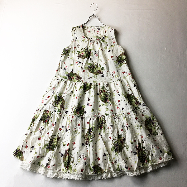 :2020年 PINK HOUSE ピンクハウス 裾ピコフリル ベリー柄 ティアード ノースリーブワンピース